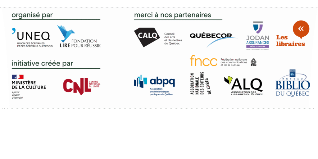 En parallèle, 40 écrivaines et écrivains se relaieront en direct sur la plateforme Zoom, de 18 h à 23 h, pour lire leurs œuvres et partager leurs univers avec le public. Chaque session de 45 minutes sera l’occasion d’une rencontre vivante, où les autrices et auteurs feront la lecture à leurs spectatrices et spectateurs. La programmation, imaginée par l’UNEQ et la Fondation Lire pour réussir, a été conçue pour satisfaire tous les goûts et tous les âges, offrant ainsi une expérience littéraire riche et variée.