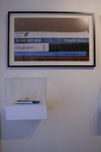 En « écrivant » de la sorte,la phrase devient palpable, le vers attend d’être trouvé dans l’espace de la pièce. Des livres sont relus.D’autres, arrivés là je ne sais comment, découverts pour la première fois.